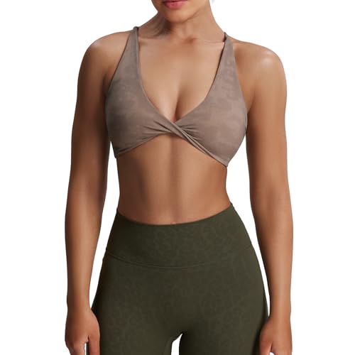 Aoxjox Dam träning sport BH fitness vadderad rygglös yoga magtröja snurrad rygg cami, Fudge kaffe, S