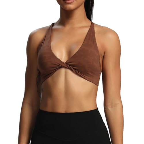 Aoxjox sport-BH, träning, vadderad rygglös yoga crop top, twist-back cami., S
