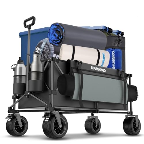 Funtango XXL rullvagn, vikbar, 300 l, 200 kg, lastkapacitet, vikbar strandvagn med bromsar, sidofickor och stora terränghjul – lämplig för sport, camping, shopping