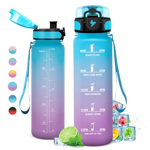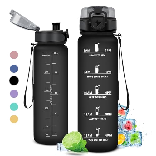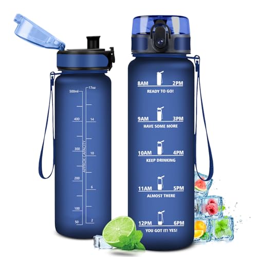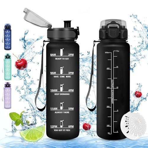 500 ml vattenflaska med motiverande tidsmarkör, flaska med filter, vattenflaska, läckagesäker, vattenflaska för barn, sport, gym, skola, gym, kontor, yoga