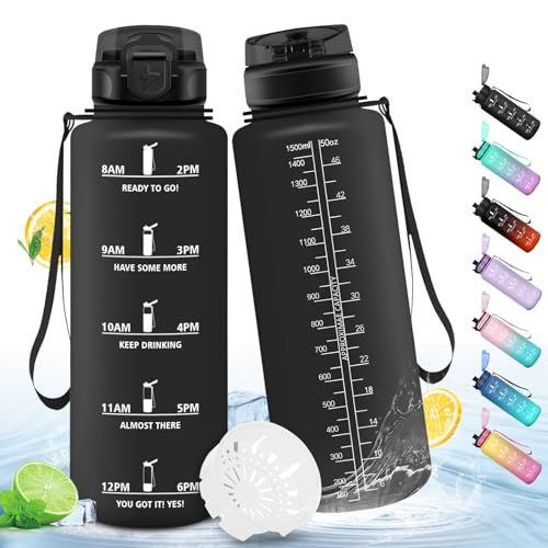 1,5 liter vattenflaska, läckagefri, motiverande vattenflaska med filter, vandringsflaska med motiverande slogan, vattenflaska för sport, vandring, cykling, camping, utomhus