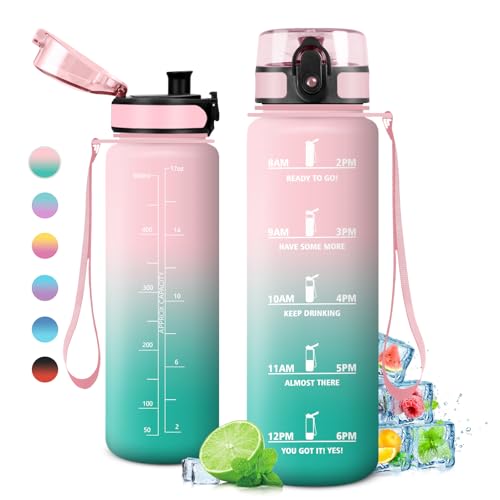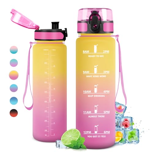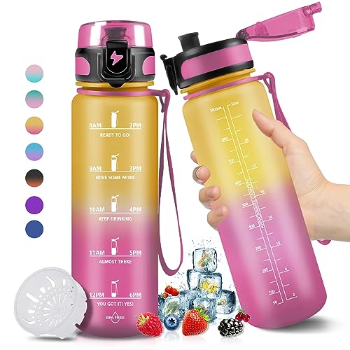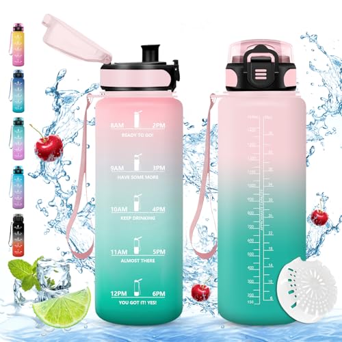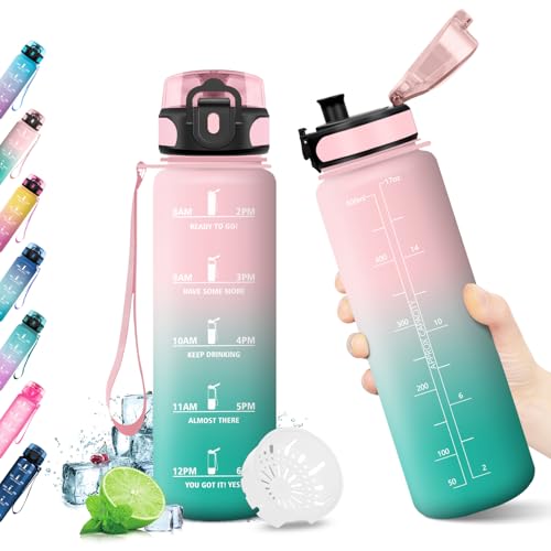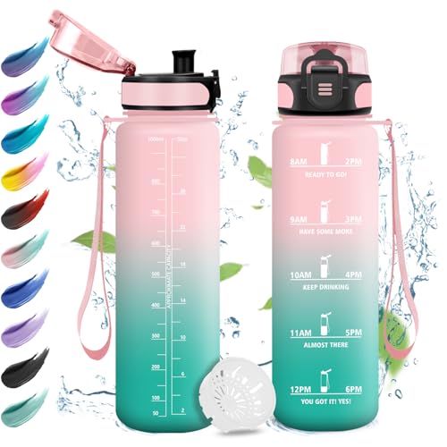 1 liter vattenflaska, läckagefri, motiverande vattenflaska med tidsskala, vattenflaska med filter, lätt att rengöra, flaska för sport, fitness, vandring, cykling, yoga