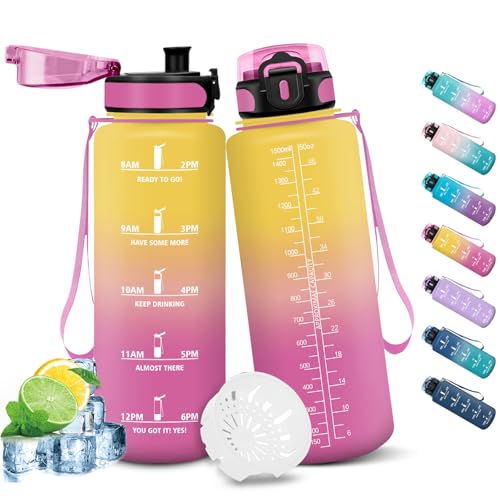 Honeyholly 1,5 liters vattenflaska, läckagesäker sport, motiverande, sport, sportflaska med filter, gymflaska för skola, kontor, studio, fitness