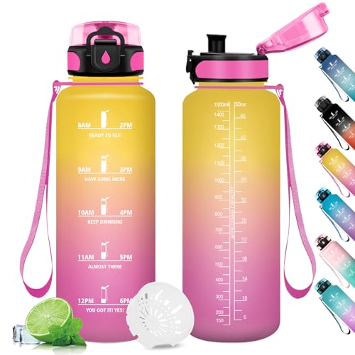1,5 l motiverande vattenflaska med filter, återanvändbar flaska, sportflaska med motiverande tidsindikator, vattenflaska för sport, gym, skola, gym, fitness, yoga