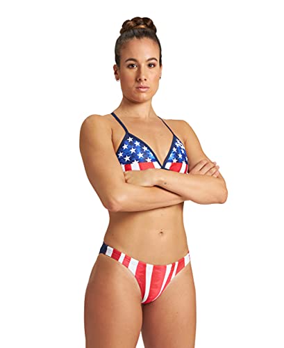 Arena Women's Standard Print Sport Bikini Tie Back MaxLife Swimsuit Bathing Suit Bottom for Swimming, Stars & Stripes-Top, 22