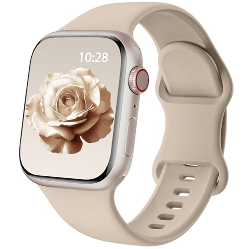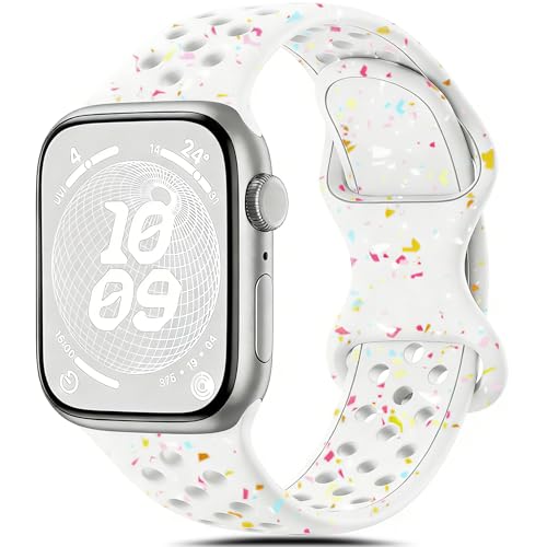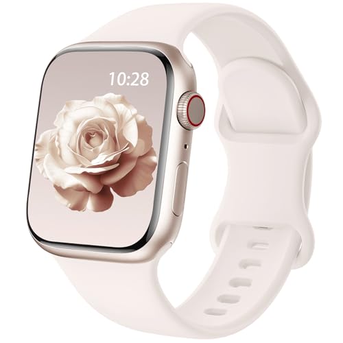 Oielai Sportarmband kompatibelt med Apple Watch-armband 42 mm, 38 mm, 40 mm, 41 mm, för kvinnor och män, mjukt silikon, ersättningsarmband för iWatch SE 3 2 1, Series 11 10 9 8 7 6 5 4 3 2 1, mjölkte