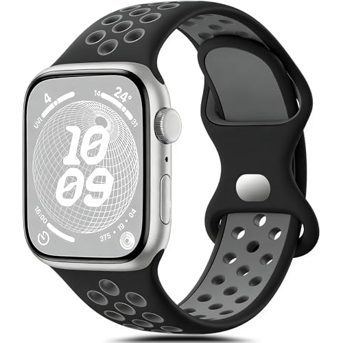 Epova Sportarmband kompatibelt med Apple Watch 42 mm, 44 mm, 45 mm, 49 mm, kvinnor och män ventilerande silikonarmband för iWatch SE 3 Series 11 10 9 8 7 6 5 4 3 2 1, svart/grå, stor