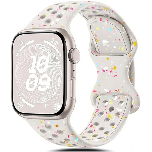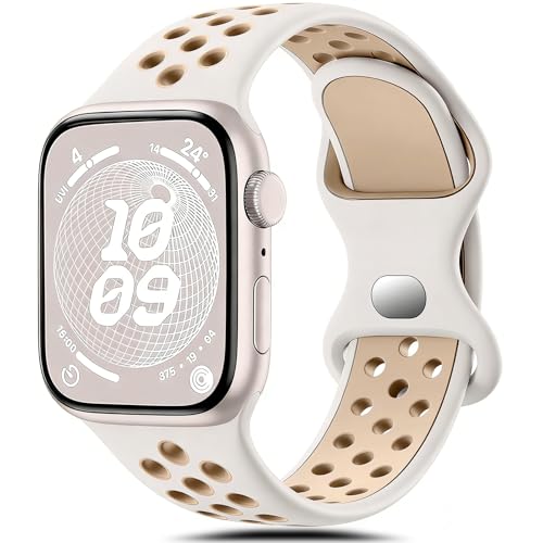 Upeak Sportarmband kompatibelt med Apple Watch-armband, 40 mm, 41 mm, 38 mm, 42 mm, ventilerande silikonrem med dubbla hål för iWatch serie 10, 9, 8, 7, 6, 5, 4, 3, 2, 1, SE, L, stjärnljus/mjölk te