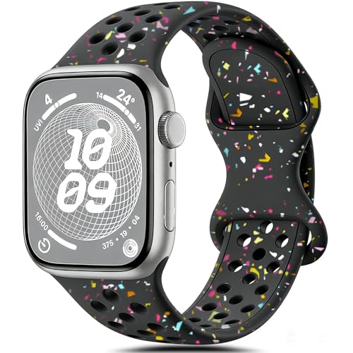 Epova Sportarmband kompatibelt med Apple Watch-armband 38 mm, 40 mm, 41 mm, 42 mm, ventilerande mjukt silikonarmband kompatibelt med iWatch SE 3 Series 11 10 9 8 7 6 5 4 3 2 1, svart/regnbåge