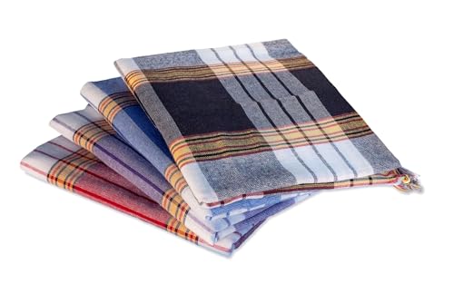 Carenesse Hammam handduk klassisk uppsättning med 4, rutig blå, röd, svart, lila, 100% bomull, 80 x 170 cm, lätt, liten förpackningsstorlek, pestemal, bastuhandduk, strandhandduk, sporthandduk