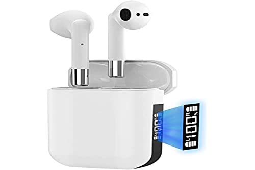 Dude Wipes trådlösa bluetooth-hörlurar, trådlösa sporthörlurar HiFi stereo ljud, bluetooth-hörlurar med HD mikrofon, med minskning, 30H vattentät pekkontroll, för iOS/Android vit
