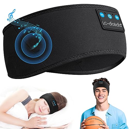 LC-dolida sovhörlurar Bluetooth 5.4, sömn-pannband, hörlurar, headband, sovmask, sporthörlurar, musik, sömn, pannband för sport, träning, jogging, yoga, resor (svart)
