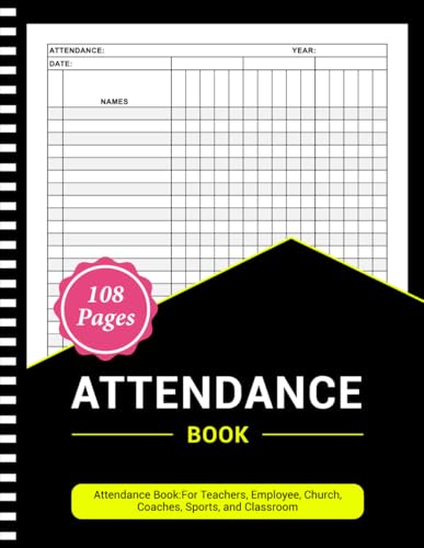 Attendance Book: Attendance Tracker for Teachers, Employees, Church, Coaches, Sports and Classrooms – 108 Pages, 8.5 x 11 Inches