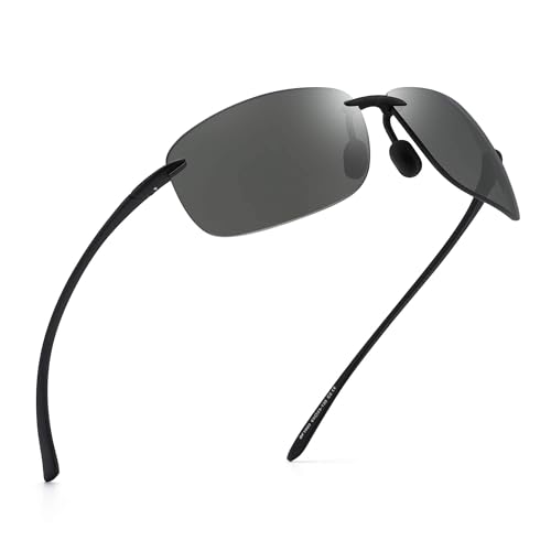 JIM HALO Sportsolglasögon för män och kvinnor obruten ram TR90 ramlös för löpning fiske baseboll körning, Polariserad grå (svart Mates-grenar)
