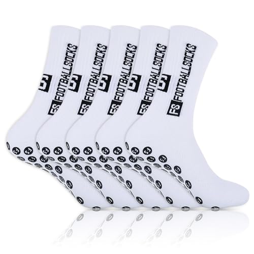 5 par sportstrumpor fotboll herr halkskydd grepp fotbollsstrumpor för män kvinnor sportstrumpor fotboll absorberar svett 39–46 ventilerande löparstrumpor kompression elastiska strumpor (vit), Vit,