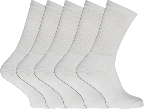 COSHAL® 5 par herr bomull rika enkla sportstrumpor andningsbara bekväma crew män sportstrumpor män promenadsportstrumpor herr atletisk träningsstrumpor UK 6-11, Vit (5 par), 40-45 EU