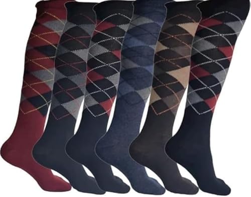 Herr bomull rik argyle design knähöga sportstrumpor, män golfstrumpor ridning sportstrumpor herr knähöga strumpor storlek 6-11, Argyle (blandade), 40-45 EU