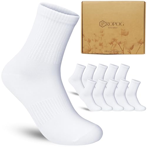 PROPOG 10 par vita sportstrumpor herr dam bomull strumpor löpning tennis 36-44, Vit., 36/44 EU