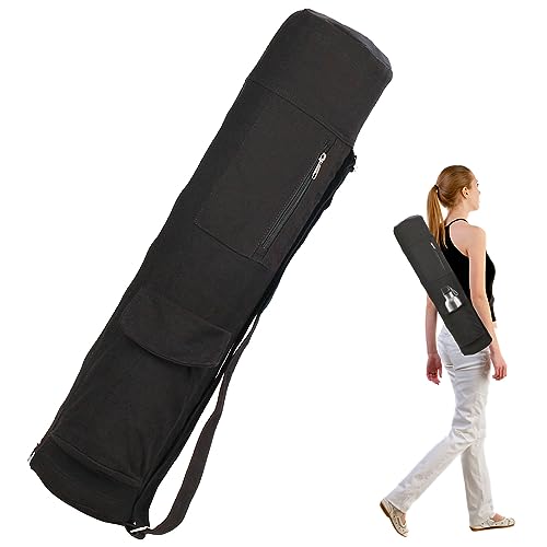 Leikurvo yogaväska sportväska dam: 69 x 16 x 16 cm yogamattväska med flaskficka, justerbar axelrem yogamatta väska, multifunktionella gym yogatillbehör för yogamattor, svart