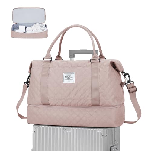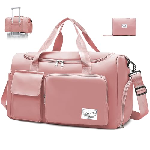 WEPLAN Duffelväskor Dam Weekendväska övernattningsväska för kvinnor och män Duffelväska Sportväska Dam Sjukhusväska med Skofack Handbagage för Flygplan Kappsäck Träningsväska Gymväska,Rosa
