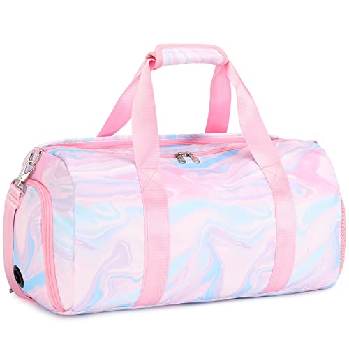 Jumpopack Träningsväska, resväska, dam, sportväska, barn, flickor med skofack, barn, simväska, weekender bag, Marmorerat rosa, 18 "L * 9.75" H * 8 "W, barnväskor
