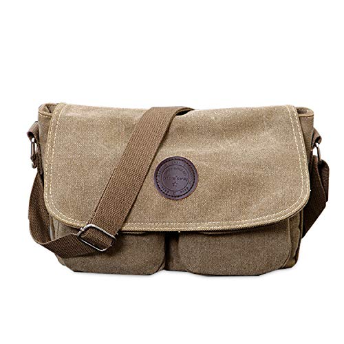 FANDARE Axelväska, kanvas, axelväska, unisex, axelväskor, 7,9 tum, iPad Messenger-väska Briefcase herr/dam, sportväska, arbete, skola, skolväska, Khaki, L, Vintage