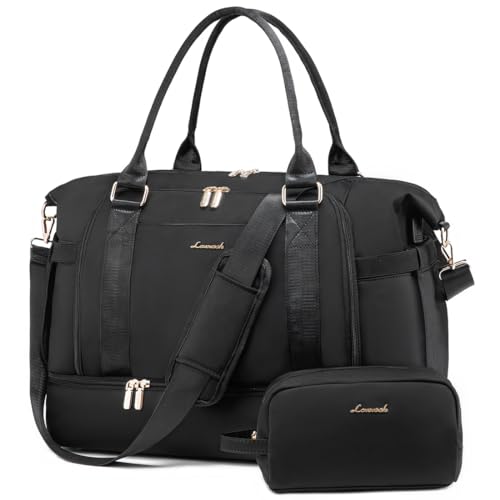 LOVEVOOK Resväska Sportväska Dam, Väska för Sport Resväska för Helger Väska för Klinik Förlossningsväska, Vattentät Gymväska med Skofack och Våtutrymme, Handbagageväska för Flygresor, Svart