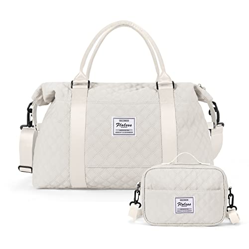 Duffelväska för resor Holdall väska Sportväska Dam Resväska för Helger Travel handbagage väska Gymväska med necessär Väska för Sport Carry on väska Overnight för kvinnor och män,Beige