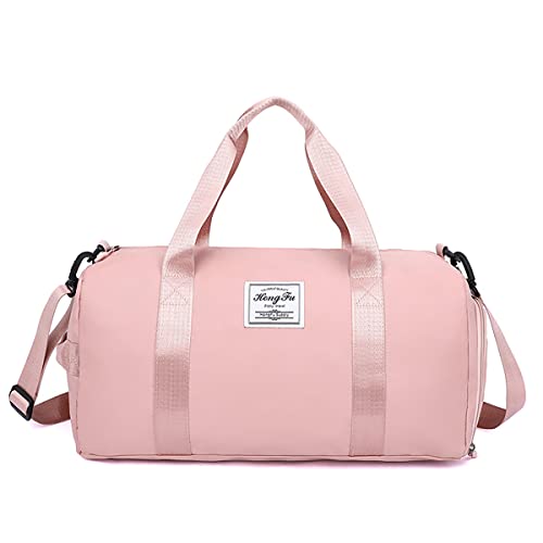 Sport duffelväska dam, sportväska med skofack och våt torkseparator, lätt träningsväska, gymväska, resa, duffel bags övernattningsväska, lätt vattentät sportväska, rosa, Rörelse