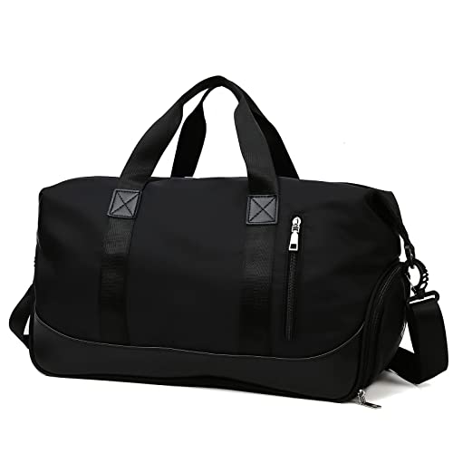 Vllcsla Sportväska Dam med Våtficka - Liten Gymväska, Vattentät Resväska, Gymryggsäck, Mjuk Weekendväska, Svart Helgväska
