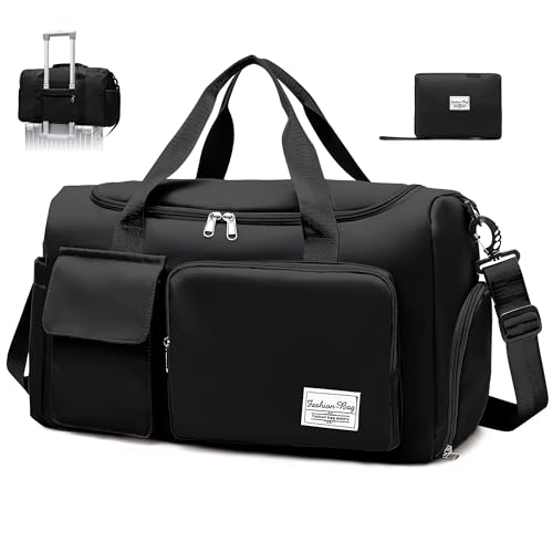 Duffelväska för resor Holdall väska Sportväska Dam Resväska för Helger Travel handbagage väska Gymväska med necessär Väska för Sport Carry on väska Overnight för kvinnor och män,Svart