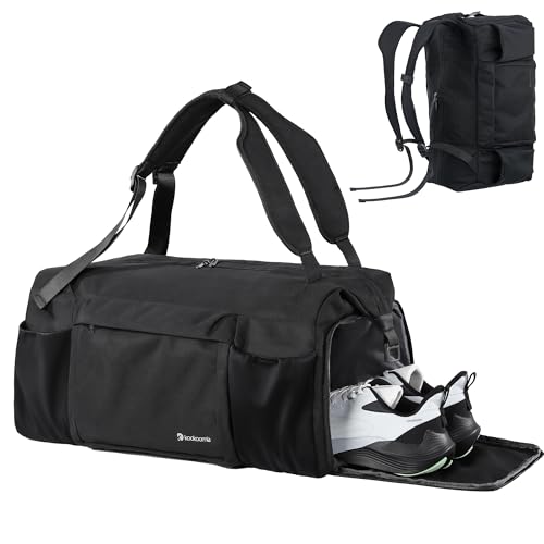 HYC00 Sportig Duffelväska Sportväska Gym Dam Herr Träningsväska Gymväskor med Skofack och Våtfack Resväska Duffelväska Fitness Väska övernattningsväska Reseduffelväskor Weekenderväska,Svart