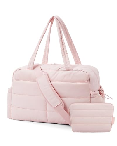 BAGSMART Resväska sportväska dam, 31 l vattenavvisande buffert handbagage väska weekender bag quiltad laptopbagage med kosmetikväska, klinikväska födsel för gym, fitness, arbete, ROSA