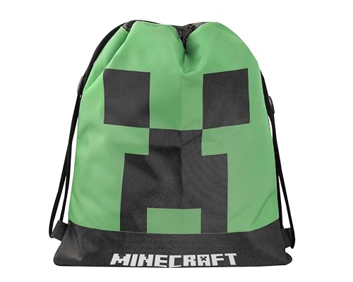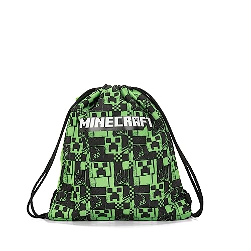 MINECRAFT Dragsko ryggsäck, Unisex sportväska för barn och tonåringar med axelband och anti-kvävning stängning med ficka med ZIP-stängning, grön, cm 35 x 42h, Grön, Taglia unica, Avslappnad