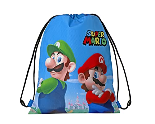 SUPERMARIO - Dragsko skolryggsäck, Unisex sportväska för barn och pojkar med axelremmar och anti-kvävning stängning med dragkedja stängning, Flerfärgad, Taglia unica, Avslappnad