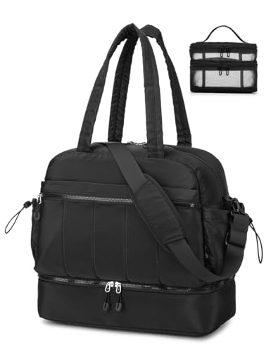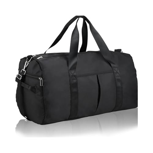 BAGZY Resväska 40x35x20 EasyJet Lufthansa Damer Stor Pufferväska 33L Handbagage Väska Resa Duffle Väska Sportväskor Weekender Mommy Kliniktasche med Nassfach Skoväska för flygplan Sport Gym Svart