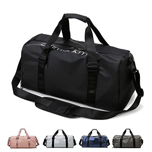 JXCTNNU Resväskor Sportväskor Vattentät Gymväska Handväska Bagage Helg Handväska med Våtväska och Skohylla för Män Kvinnor, svart, 51 cm x 24 cm x 35 cm, Sportväskor