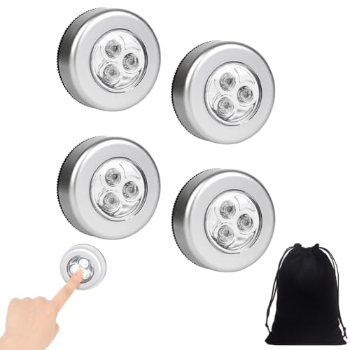 4 st trådlös självhäftande LED-spotlight, batteridriven självhäftande nattlampa för garderob, entré, kök, passage (utan batteri)