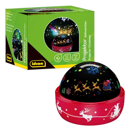 Idena 50147 LED-spotlight, julbelysning med färgglada julmotiv, stjärnhimmel LED-projektor med 2 lägen, batteridriven, ca 16,2 x 13 cm