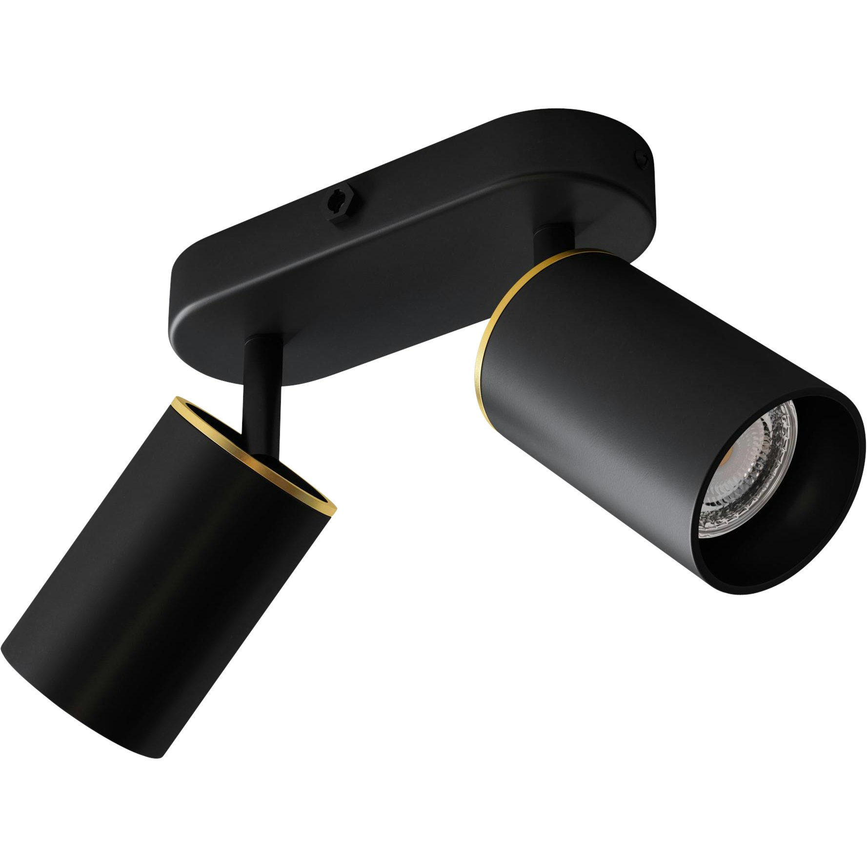 Lume takspotlight, 2 lampor, svart/mässing, höjd 22 cm, järn Lucea, dimbar, Svart, Vardagsrum / matsal, Metall, Spotlight