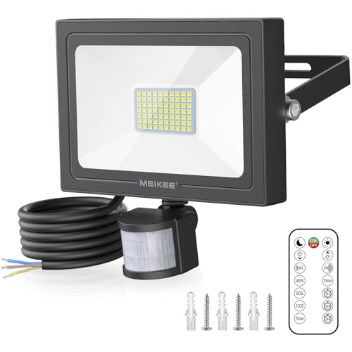 MEIKEE Rörelsesensor spotlight 60 W 5 200 lm utomhus LED-strålkastare med fjärrkontroll 6 500 K kall vit vattentät IP66 säkerhet för trädgård, hall, garage, uteplats