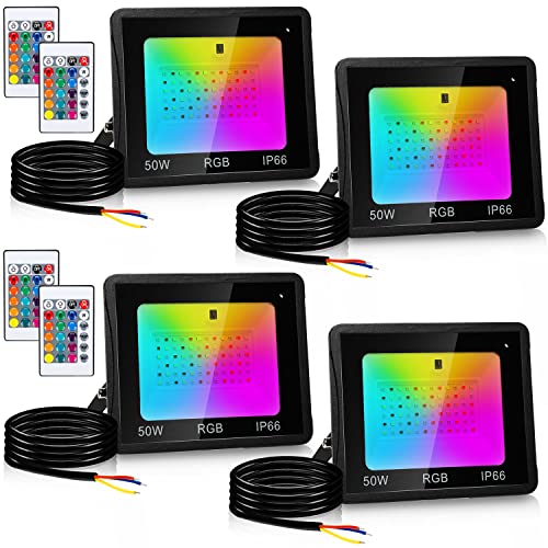 Lospitch 4X RGB spotlight utomhus, 50W färgad LED utomhusspotlight med fjärrkontroll, färgminnesfunktion, 16 färger 4 lägen, stämningsljus med färgväxling, trädgård i trädgården inomhus utanför