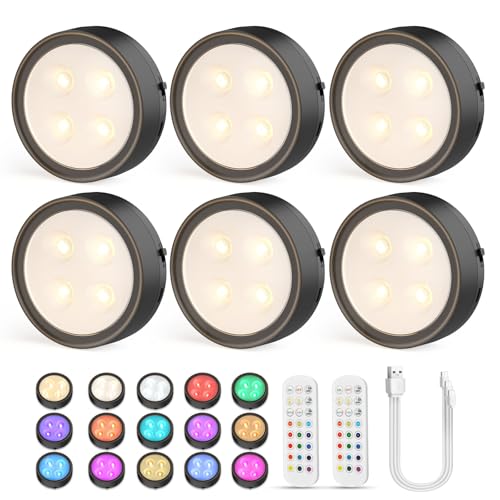 Onumii Uppladdningsbar LED-lampa kök trådlöst underskåp skåp belysning LED-spotlight med USB-fjärrkontroll batteri skåp ljus 12 färg dimbar specialbelysning (6 st svart)