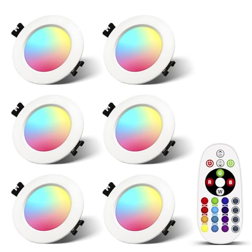 FWoche LED infälld spotlight 230V 7W, rund RGBW takspotlight med IR-fjärrkontroll RGB takspotlight Dimbar färgskiftande infälld ljus aluminium LED taklampa (6 st)