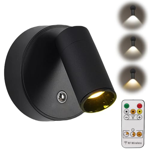 SMY Lighting LED vägglampa inomhus, spot trådlös med batteri, 3 färgtemperaturer, timing-funktion, touch- och fjärrkontroll, dimbar spotlight för sovrum vardagsrum väggbild