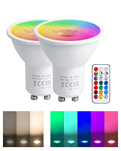 REYLAX GU10 6W LED-Lampor, RGB + Varmvit, LED-Spotlight Med Färgbyte, 12 Färger 5 Lägen, Minnesaktivering, Dimning Med Infraröd Fjärrkontroll, 2pcs