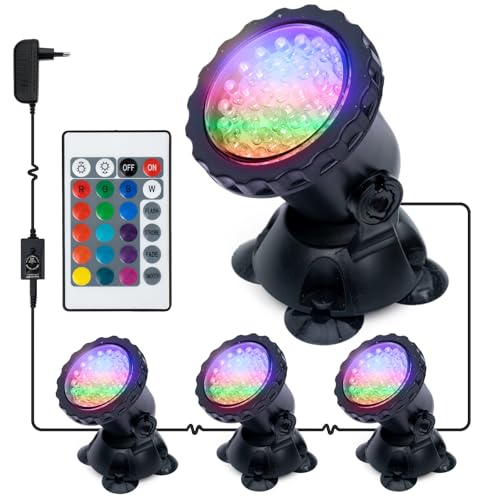 GreenSun dammbelysning, under vatten, RGB, spotlight, IP68, vattentät, trädgårdsdamm, lampa, fisk, dammlampa med fjärrkontroll