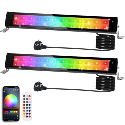 CREATESTAR RGB LED wallwasher, LED spotlight 48W LED bar IP66 vattentät smart partylampa med fjärrkontroll och minnesfunktion timer för ute inne i trädfestträdgård (2)