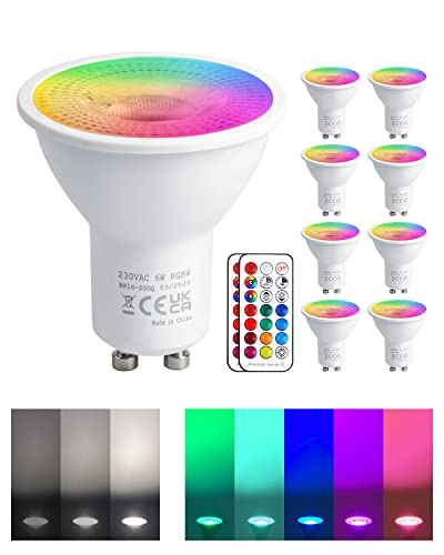 REYLAX 8pcs GU10 6W LED-Lampor, RGB + Varmvit, LED-Spotlight Med Färgbyte, 12 Färger 5 Lägen, Minnesaktivering, Dimning Med Infraröd Fjärrkontroll