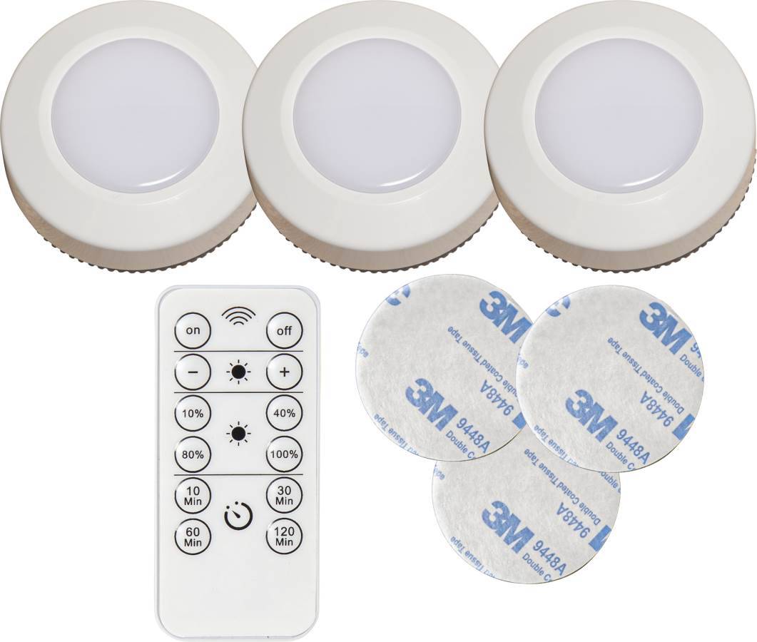 Spotlight - För garderober/kök - Trådlös - Med fjärrkontroll - Set med 3 st.